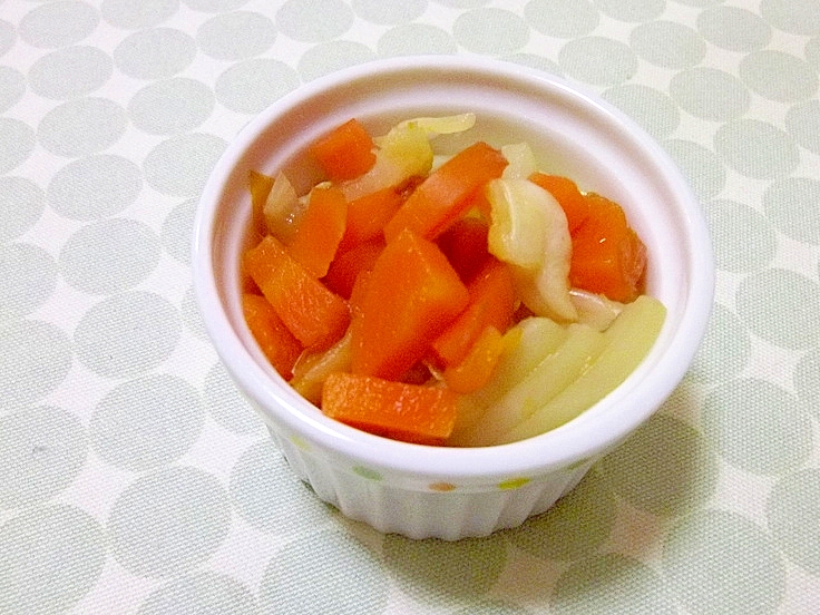 離乳食完了期 レンジで大根と人参のコンソメ煮 レシピ 作り方 By ズボラでもおいしいごはんが食べたい 楽天レシピ